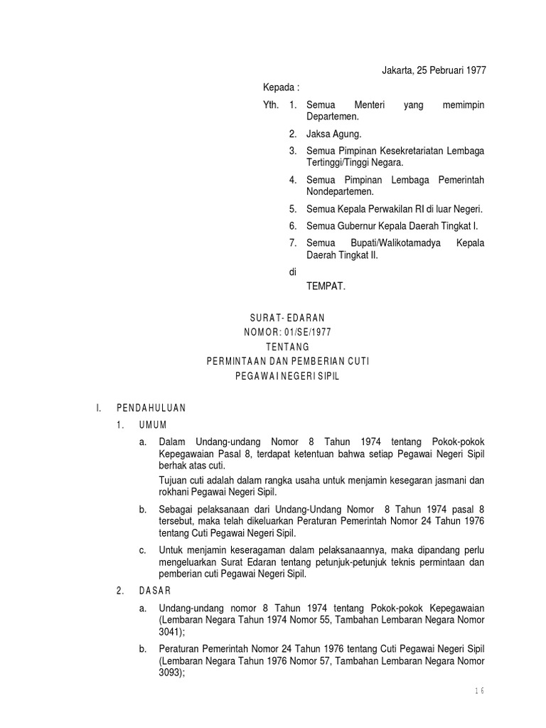 Isi Surat Edaran Kepala BAKN No 01 SE 1977